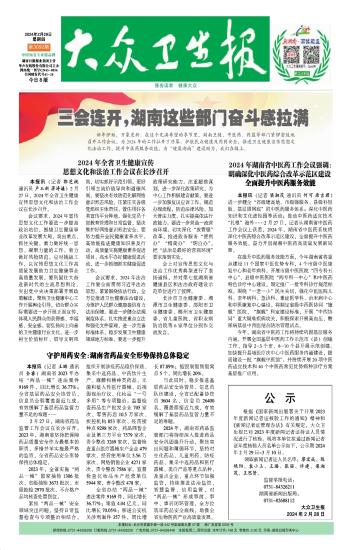 本报讯(记者 梁湘茂 通讯员 何可 唐吉君)进一步健全“省级建高地、市级强服务、县级补短板、基层固网底”的中医药服务体系;深化中医药知识和文化进校园等活动;推动中医药适宜技术“扎根”海外……2月27日,记者从湖南省中医药工作会议上获悉,2024年,湖南省中医药系统将深化中医药综合改革示范区建设,全面提升中医药服务效能,奋力开创湖湘中医药高质量发展新局面。