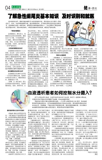 总之,在日常生活中,透析患者需要严格控制饮水量。这样可以帮助患者稳定控制病情,提高透析治疗的质量,维持机体健康;同时提高患者的生活质量。