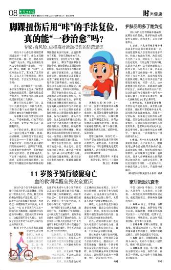 踝关节扭伤是日常生活、运动健身活动中最常见的损伤,为了减少这类损伤的发生,必须更多地关注对踝部损伤的预防:避免穿高跟尖底鞋在凹凸不平的道路上快走,对于有过损伤史或者是特殊职业人群需按常规着防护装备,保持正确体位,避免不良姿势,防止急性扭伤和慢性劳损;日常生活中适当地进行体力劳动或体育锻炼,使薄弱、松弛的踝部韧带和软组织得到增强,增加踝关节活动的柔韧性及骨的刚度,可在一定程度上预防踝部损伤的发生和将损伤减低至最小限度。