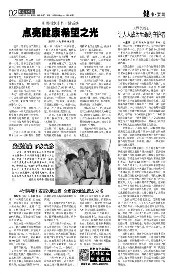 郴州再增1名百次献血者 全市百次献血者达32名