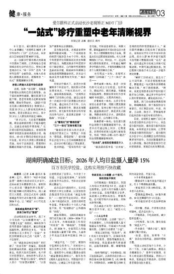 减盐周期间,《湖南省减盐专项行动实施方案(2024—2026 年)》正式发布,为湖南减盐工作划定“时间表” 和 “路线图”。方案提出,到 2026 年,全省居民人均每日食盐摄入量需下降 15%,儿童青少年高血压患病率控制在 5% 以下。