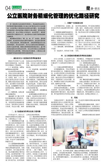 在新医改背景下,推进财务精细化管理已成为公立医院实现可持续发展的重要途径。当前公立医院财务管理仍存在预算约束不足、成本核算粗放、资金运营效率偏低及信息化支撑不足等问题。通过完善预算管理体系、强化成本控制、提升资金运营效率以及推动信息化建设,可以逐步实现财务管理由粗放向精细转型。