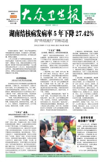 湖南结核病发病率5年下降27.42%