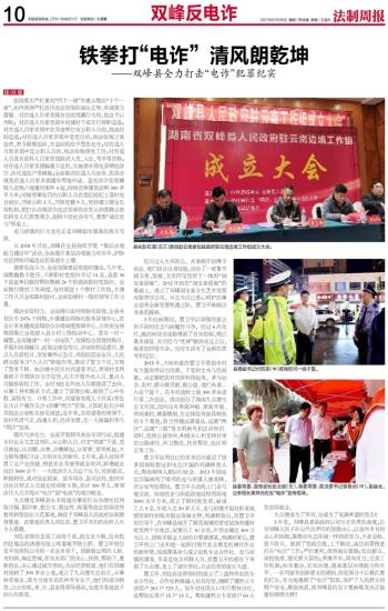 对此,双峰县委政府高度重视,认真反思,痛定思痛,知耻后勇,决心以抓铁有痕的铁腕,滴水穿石的毅力,上下齐动,部门联手,不获全胜,决不收兵。县委政法委牵头,政法系统尽锐出战,相关部门单位调集精兵强将参与其中。全县成立了打击治理电信诈骗专项办公室,统筹协调、指挥调度、督促检查全县工作开展,成员单位主动作为,扎实工作,履职尽责。各乡镇、街道守土有责,守土尽责,发动广大人民群众在1700多平方公里的双峰大地,掀起一场打击“电诈”的飓风行动,荡污去浊,扬清见亮。