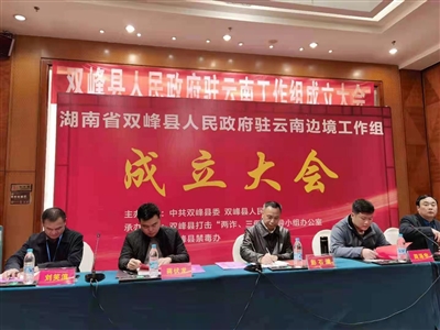 县长彭石清(左三)亲自赴云南参加县政府驻云南边境工作组成立大会。