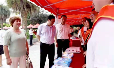 县委常委、宣传部长彭云辉(左),县委常委、政法委书记曾春谷(中),副县长、公安局长黄祥光在反“电诈”宣传现场。