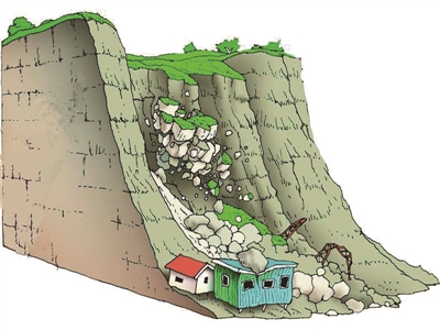 建房选址中,岩层层面、裂隙面等不连续面顺斜坡分布时,边坡岩体稳定性差,最易发生滑坡或崩塌等灾害,坡面岩体被多组裂隙切割破碎,也极易发生滑坡或崩塌等。