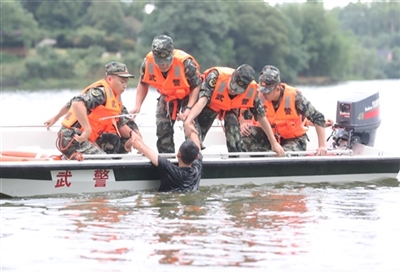 5月27日,武警衡阳支队在衡阳市雁峰区南湖公园开展水域救援集训暨抗洪抢险实战演练,提高队伍抗洪救援能力,为平安度汛做好充足准备。