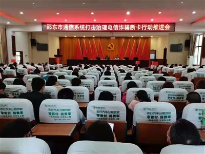 5月20日,邵东市召开通信系统打击治理电信诈骗“断卡行动”推进会,要求全力打好反“电诈”人民战争。为有效遏制和打击治理电信网络新型违法犯罪行为,切实保障人民群众财产安全,邵东市多措并举,多方联动,全方位推进打击电信诈骗犯罪工作。