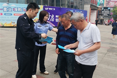 本报讯(通讯员 戴礼顺)近日,新邵县公安局网安大队组织民警走上街头、车站、超市以及银行等场所,开展防范电信诈骗宣传活动。