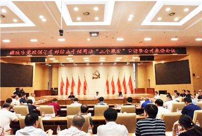本报讯(通讯员 胡蓉)6月9日,醴陵市召开党政领导干部防止干预司法“三个规定”宣讲暨公开承诺大会,醴陵市检察院党组书记、检察长黄晓军就防止干预司法“三个规定”作专题宣讲。会议由市委书记王利波主持,全体在醴处级领导干部,各镇街、市直单位党政主要负责人参加。