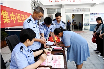 本报讯(通讯员 魏仁贵)“这可是我们两口子当年一年的工钱,感谢政府,感谢派出所!”6月8日,安化县公安局江南派出所举行农民工工资集中返还仪式,王先生等17名农民工领回了被拖欠的工资250973元。