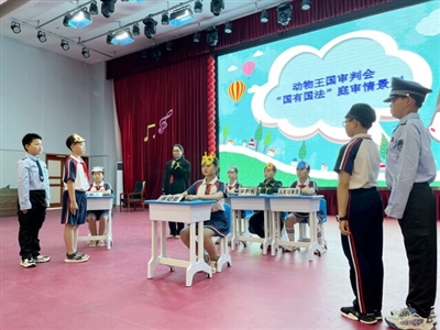 6月15日,张家界市永定区人民法院“国有国法”庭审情景剧法治宣传教育巡演第二站走进张家界民族小学,通过贴近生活的案例,让民族小学的学生们真实地体验了一回当法官的感觉,过了一把“法官瘾”,也进一步加深了青少年学生对法律知识和司法程序的理解。