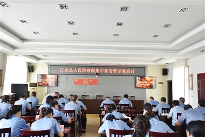 本报讯(通讯员 毛飞扬)为进一步增强全院干警的廉洁自律意识,提高拒腐防变能力,6月21日,江永县检察院组织全院干警集中观看了警示教育片《打铁还需自身硬》上篇《信任不能代替监督》。