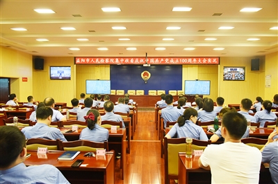 ③7月1日8时,益阳市检察院组织全体干警集中收看庆祝中国共产党成立100周年大会实况。图|钟亮