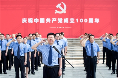 ⑥近日,娄底市检察院举行“重温入党誓词”“我和党旗合个影”活动。党组书记、代检察长李太平领誓。图|柳勇 谢特波