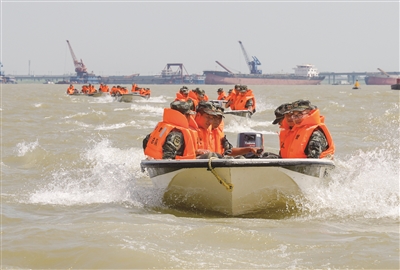 7月14日,岳阳市东洞庭湖岳阳楼水域,武警官兵在学习编队航行理论知识。入汛以来,武警湖南总队在洞庭湖水域开展为期15天的抢险救援骨干集训,开展抢险救援基础知识、水上舟艇编队航行、水上救援等课目训练,提升部队抗洪抢险能力。