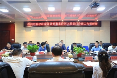 本报讯(通讯员 蔡澄)近日,株洲市委政法委在天元区法院召开政法跨部门刑事案件办理工作调研会。会议由市委政法委副书记颜文明主持,市委政法委、市中院、市检察院、市公安局、市司法局、天元区委政法委、天元区法院、天元区检察院、天元区公安分局、天元区司法局相关人员参加会议。