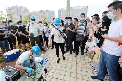 在28日的理论授课后,学员们于29日来到长沙市排水有限责任公司雨花水质净化厂现场接受执法监测常规项目操作培训。