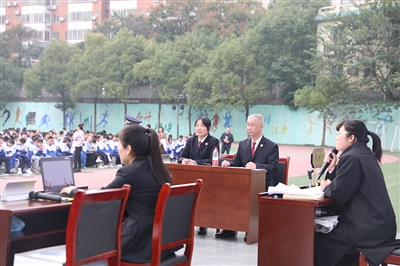 10月27日下午,郴州市北湖区检察院联合区法院走进北湖区实验中学,为该校4000名师生带来了一场庄严、生动、直观的庭审,让同学们零距离感受法律的庄严、神圣。