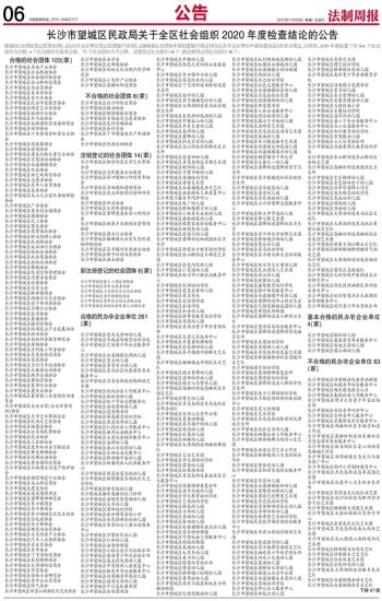 长沙市望城区民政局关于全区社会组织2020年度检查结论的公告
