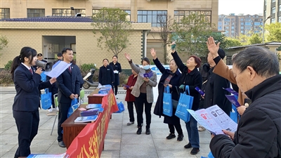 11月10日上午,在银山御园小区广场,醴陵市检察院联合碧山社区,组织开展了“垃圾分类+公益诉讼”志愿服务活动。检察干警和社区工作人员向小区居民发放垃圾分类宣传册、醴陵检察宣传册、公益诉讼宣传册等相关资料共计800余份。为保证宣传效果,检察干警还设计了有奖竞答环节,引导居民树立垃圾分类的绿色理念,进一步加深对检察工作的了解。
