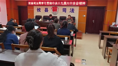 11月12日,攸县司法局召开专题会议,传达学习中国共产党第十九届中央委员会第六次全体会议精神,局机关全体干部参加会议。