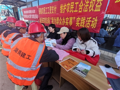 本报讯(通讯员 陈小兵)近日,株洲市司法局组织市法援中心、市劳动保障监察支队、天元区司法局、市国信公证处、市中心医院司法鉴定中心工作人员走进工地,宣传《民法典》《法律援助法》《保障农民工工资支付条例》,面对面宣讲农民工权益保障、接受施工方和农民工的法律咨询,讲解有关公证保全、劳动人事争议、人身损害赔偿等纠纷的处理,深受农民工朋友的欢迎和好评。