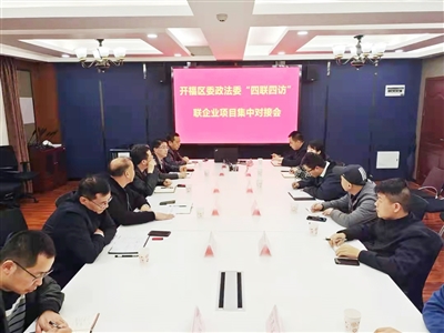 早介入、勤体检、齐推进。充分认识到政法工作对经济生活中的预警、护航作用,主动作为。主动对区内重大案件及时沟通衔接,开展精准研判分析,发挥政法机关信息情报优势,提供司法建议,定期开展企业“法律体检”,科学进行风险管控;主动参与片区征拆工作,确保项目建设与政法保障同步推进,把牢项目建设法治关口,依法审查行政文件,参与行政司法互动;完善诉讼对接机制,依法及时解决涉经济案件纠纷,更好发挥诉讼服务中心、公共法律服务中心平台作用,提升司法便民实效。