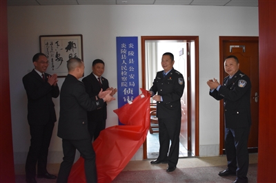 为适应以审判为中心的刑事诉讼制度改革,提高刑事案件质量和效率。11月23日,炎陵县人民检察院驻县公安局侦审指导办公室正式揭牌成立。炎陵县副县长、公安局党委书记、局长袁杲(右一),炎陵县检察院党组书记、检察长郭建(左一)及检察院、公安局相关部门负责人参加揭牌仪式。