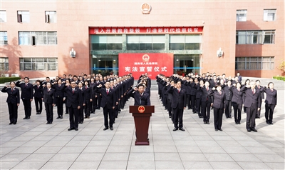 12月3日,在国家宪法日即将来临之际,省人民检察院组织机关新提任领导职务人员、新晋升职级等级人员、新入职干部和新聘用书记员共139人举行宪法宣誓仪式。省检察院检委会专职委员杨鸿领誓(详见2版)。