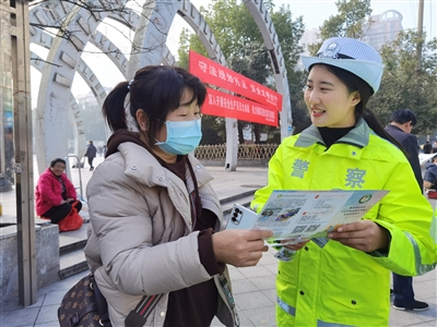 “您好,请靠边停车,你戴头盔的方法不正确!”在县城边城广场路段,花垣县公安局交警拦下一名摩托车驾驶员,向其告知正确的安全戴帽方式。12月2日是第10个“122全国交通安全日”,为进一步加强广大群众的交通安全意识,花垣县公安交警联合县委宣传部、交通局、应急管理局等部门开展以“守法规知礼让 安全文明出行”为主题的宣传活动。