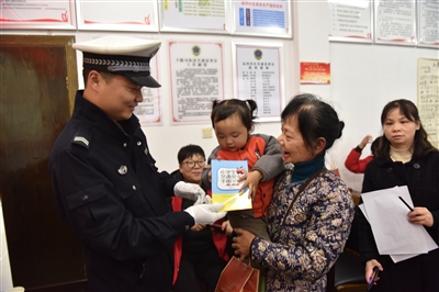 12月9日下午,湘潭交警“美丽乡村行”走进运河社区,给群众带去了70万份安全宣传卡片中的200份和刑法修正案(十一)及农村交通安全知识读本等资料、安全头盔以及由湘潭市义工联合会提供的实用礼品等物资。图为支队安宣科民协警与文明交通志愿者一道给大家宣讲交通安全知识,开展互动,气氛和谐热闹喜庆。