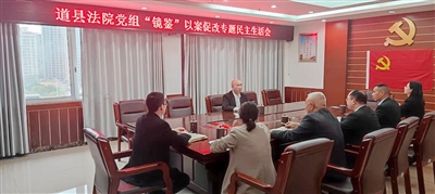 本报讯(通讯员 李何濂正)近日,道县人民法院党组召开“镜鉴”以案促改专题民主生活会。会议由院党组书记、院长陈道远主持,全体班子成员参加会议。县纪委监委派驻县法院纪检监察组组长、院党组成员朱爱华到会指导。