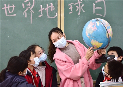 4月19日,嘉禾县博雅学校老师向学生讲解地球知识。在第53个世界地球日前夕,该县多所学校开展“珍爱地球·人与自然和谐共生”主题教育活动,通过主题班会、手抄报、废旧物品再利用等形式,向学生普及地球知识,培养学生热爱地球、保护环境意识。