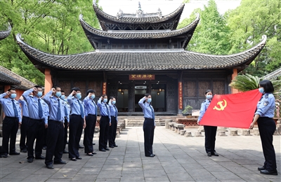 为持续巩固拓展党史学习教育和政法队伍教育整顿成果,纵深推进清廉机关创建,近日,沅陵县公安局政工室、警务督察大队和法制大队党支部到县清廉文化教育基地清廉讲堂,开展“清廉警营·廉洁颂”主题党日活动。图为参与活动党员民警重温入党誓词。