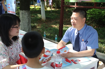4月24日上午,为提升知识产权司法保护品质,增强公众知识产权保护意识和维权能力,郴州市检察院联合北湖区检察院在五岭广场开展以“尊重保护创新、全面开启知识产权强省建设”为主题的普法宣传活动。此次宣传活动共发放资料200余份,现场接受群众咨询30余人次,取得了“为民办实事”的良好社会效果、法律效果。
