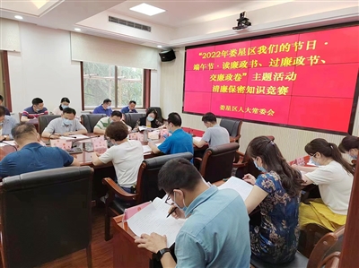6月2日,娄星区人大机关举办“我们的节日”——“读清廉书·交清廉卷·过清廉节”廉政、保密知识竞赛活动,对机关干部了解和掌握《中国共产党纪律处分条例》《中国共产党廉洁自律准则》、保密知识等进行测试,以增强干部的廉洁意识和保密意识。
