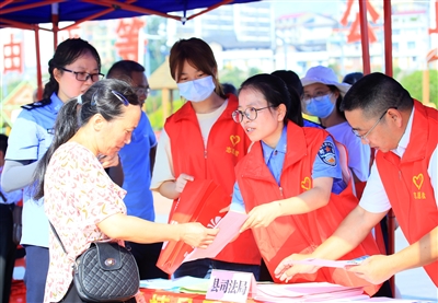 启动仪式现场,县法院、检察院、公安局、县司法局等单位的工作人员还通过悬挂普法宣传横幅、摆放宣传展板、发放普法宣传资料、设立普法咨询服务平台等方式,向过往群众宣传《反有组织犯罪法》《未成年人保护法》等法律及防范养老诈骗、禁毒等相关法律知识。