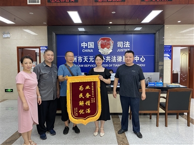本报讯(通讯员 欧阳芳 万丹)“谢谢你们,为我解决了大问题!”8月17日,受援人易某某将一面印有“为民解忧,业务精湛”的锦旗送到株洲市天元区法律援助中心,对该中心为他依法维权表示由衷感谢。