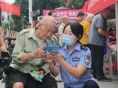 9月7日上午,靖州苗族侗族自治县公安局在县城开展网络安全宣传活动。活动现场,民警向群众普及网络安全知识和防范网络电信诈骗常识。提醒广大人民群众尤其是老年群体要增强对网络谣言、电信诈骗、信息窃取等不法行为的辨别能力和安全防护技能。通讯员 尚萌