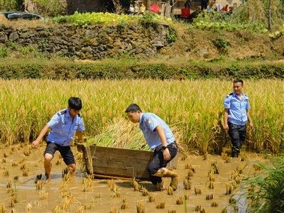 金秋九月,稻花飘香。新晃侗族自治县公安局龙溪派出所党支部深入田间地头,解群众之所困。近期,派出所民警帮助辖区两户缺少劳动力、体弱多病的困难农户收割稻谷4亩,用实际行动唱响了亲民助民的主旋律,赢得辖区群众好评。