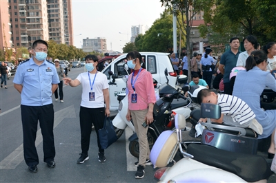 放学高峰时段,代表们在县一完小、澧州实验学校、银谷国际实验学校观摩交警执法执勤,实地感受了放学高峰时段学校周边道路通行情况。