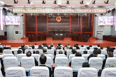 会议要求,全体党员干警要把学习贯彻党的二十大精神作为首要政治任务,采取多种形式,切实抓紧抓好。要认真研读报告原文,读懂、学深、领会精神实质,把握核心要义。要把学习贯彻党的二十大精神与法院工作结合起来,立足岗位,履职尽责,以良好的精神状态和优异的工作成绩,为落实党的二十大确定的各项目标任务,加快推进法治衡阳建设贡献人民法院力量。