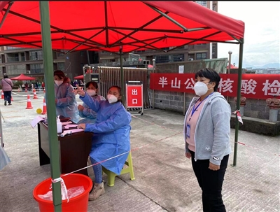“连日来,很多同志克服了工作时间长等多种困难,中午匆匆吃点盒饭又立马投入战斗,连续工作八九个小时,虽然很累,但没有一个人有怨言。”核酸检测采样现场,县纪委常务副书记、县监委副主任瞿宏文如是说。