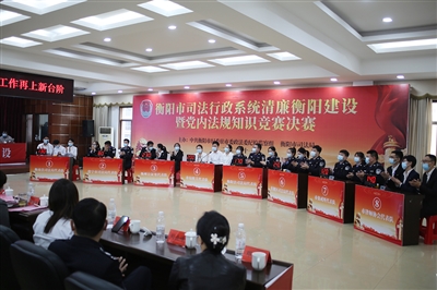 本报讯(李少华 尹俊杰)11月7日上午,由衡阳市纪委监委驻市委政法委纪检监察组、衡阳市司法局联合主办的衡阳市司法行政系统清廉衡阳建设暨党内法规知识竞赛决赛举行,来自各县市区司法局、局直各单位、局机关等8支队伍参赛。经过激烈角逐,蒸湘区司法局代表队获得一等奖。衡阳市纪委监委驻市委政法委纪检监察组组长杨宏发,衡阳市司法局党组书记、局长杨安定分别为获奖选手颁奖。