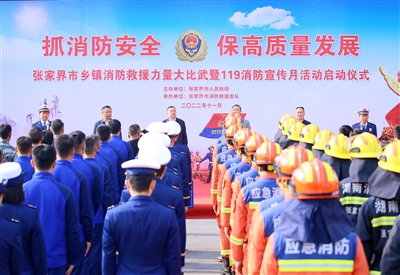 今年11月9日是第31个全国消防日。从2017年开始,每年的11月为全国消防宣传月,今年的活动主题为“抓消防安全、保高质量发展”。启动仪式上,与会领导宣布了“119”宣传月活动方案,介绍了张家界市两人荣获“第六届全国119消防先进个人”情况,张家界市民歌志愿消防救援队代表发表了消防志愿者倡议。