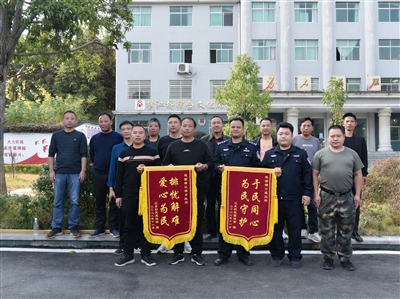 本报讯(通讯员 尚萌 龙俊霓)11月9日,数名群众手捧锦旗来到靖州县横江桥便民服务中心,感谢靖州县公安局铺口派出所民警和横江桥便民服务中心工作人员深夜救援自己的父亲。