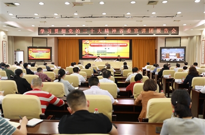 报告会上,彭澎重点围绕党的二十大的主题、主要成果,过去5年的工作和新时代10年的伟大变革,马克思主义中国化时代化,中国式现代化,全面建设社会主义现代化国家的目标任务等方面,对党的二十大精神进行了全面阐释和系统讲解。