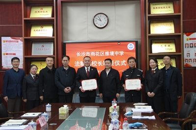 “检察机关作为国家法律监督机关,加强未成年人法治教育工作义不容辞。作为法治副校长,要以习近平法治思想为统领,以贯彻‘一号检察建议’为主要任务,充分履职尽责,做青少年健康成长的法治引路人、贴心人和好伙伴。”11月14日,长沙市雨花区检察院检察长尹跃连在雅境中学的聘任仪式上说,将积极推动建立完善检校合作机制,以检察元素为特色,做实新时代法治教育。通讯员 罗飞艳